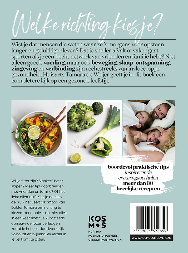 Door middel van het door Dokter Tamara ontwikkelde Leefstijlkompas vertelt zij op een toegankelijke manier over de thema’s bewegen, ontspanning, slaap en voeding Daarnaast bevat het boek 30 heerlijke recepten en diverse ervaringsverhalen. Ook is er aandacht voor de mentale kant, met thema’s als sociale verbinding, gedragsverandering en zingeving. Kortom: alles voor meer balans en een gezondere ‘jij’!