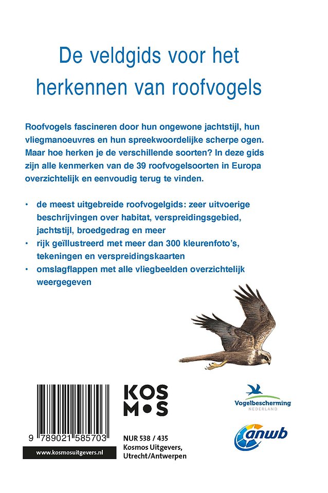De ANWB Roofvogelgids van Europa van Daniel Schmidt-Rothmund, Winfried Nachtigall & Theodor Mebs is dé vogelgids voor iedereen die alles wil weten over alle Europese roofvogels. De 39 soorten worden zeer uitvoerig beschreven, compleet met hun specifieke kenmerken, habitat, jachtmethoden, voortplanting en populaties. Met meer dan 300 foto’s, illustraties inclusief vliegbeelden, en verspreidingskaarten wordt het herkennen en waarnemen van deze majestueuze vogels heel eenvoudig.