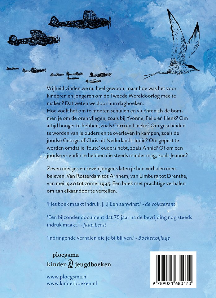 Zeven meisjes en zeven jongens laten je hun verhalen meebeleven. Van Rotterdam tot Arnhem, van Limburg tot Drenthe, van mei 1940 tot zomer 1945. Een terecht bekroond boek met prachtige verhalen om aan elkaar door te vertellen.