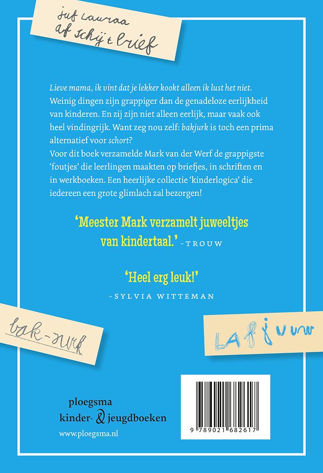 Voor dit boek verzamelde Mark van der Werf de grappigste ‘foutjes’ die leerlingen maakten op briefjes, in schriften en in werkboeken. Een heerlijke collectie kinderlogica die iedereen een grote glimlach zal bezorgen!