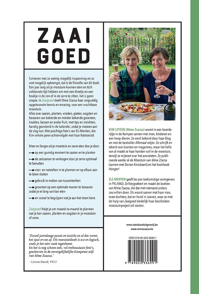 Tuinieren met zo weinig mogelijk inspanning en zo veel mogelijk opbrengst, dat is de filosofie van dit boek. Een jaar lang uit je moestuin kunnen eten en tóch voldoende tijd hebben om met een theetje en een boekje in de zon of in de serre te zitten, het is geen utopie. In Zaaigoed deelt Mme Zsazsa haar zorgvuldig opgebouwde kennis en ervaring, voor een vruchtbare moestuin.