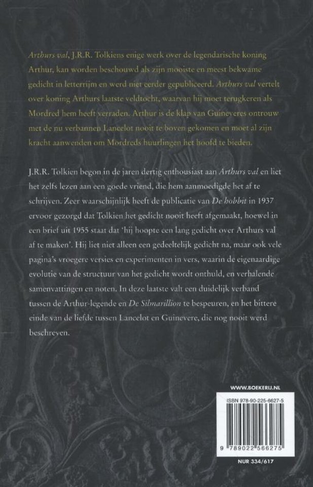 Arthurs val, J.R.R. Tolkiens enige werk over de legendarische koning Arthur, kan worden beschouwd als zijn mooiste en meest bekwame gedicht in letterrijm en werd niet eerder gepubliceerd. Arthurs val vertelt over koning Arthurs laatste veldtocht, waarvan hij moet terugkeren als Mordred hem heeft verraden. Arthur is de klap van Guineveres ontrouw met de nu verbannen Lancelot nooit te boven gekomen en moet al zijn kracht aanwenden om Mordreds huurlingen het hoofd te bieden.