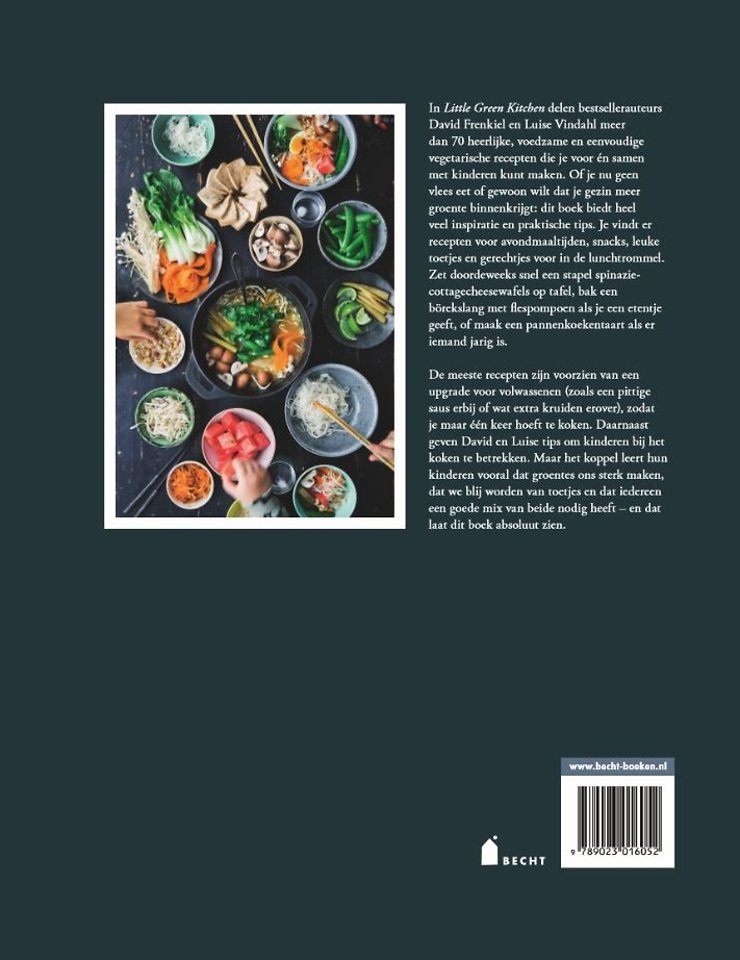 In 'Little Green Kitchen' geven David en Luise hun nieuwe recepten die je voor en samen met kinderen kunt maken. In het boek staan recepten voor onder andere doordeweekse maaltijden, feestgerechten, lunchtrommelfavorieten, snacks en zoetigheden. Bij elk recept staat een tip om het gerecht een twist te geven voor volwassenen en een tip voor hoe kinderen kunnen helpen bij de bereiding. De heerlijke gerechten als tofu-cashew-masala en quesadilla's met portobello en avocado doen niet alleen kinderen watertanden!