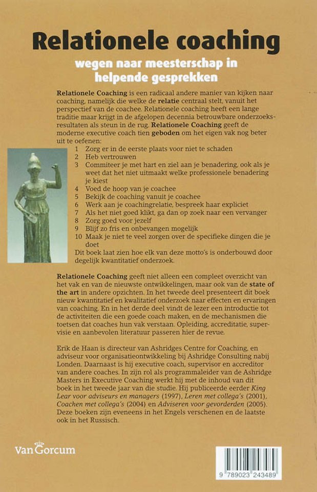 Relationele Coaching is een radicaal andere manier van kijken naar coaching, namelijk die welke de relatie centraal stelt, vanuit het perspectief van de coachee. Relationele coaching heeft een lange traditie maar krijgt in de afgelopen decennia betrouwbare onderzoeksresultaten als steun in de rug. 'Relationele Coaching' geeft de moderne executive coach tien geboden om het eigen vak nog beter uit te oefenen: