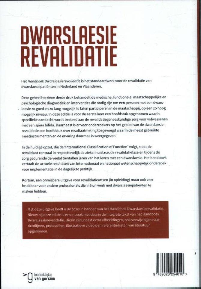 Met deze uitgave heeft u de basis in handen van het Handboek Dwarslaesierevalidatie. Nieuw bij deze editie is een E-book met daarin de integrale tekst van het Handboek Dwarslaesierevalidatie. Hierin zijn, naast extra afbeeldingen, ook verwijzingen naar richtlijnen, protocollen, illustratieve video's en referentielijsten van literatuur opgenomen. Meer informatie over of bestellen: www.zorgstudie.nl