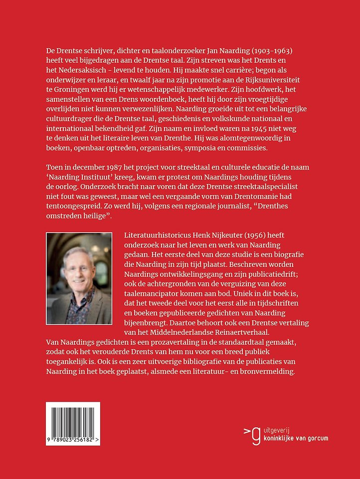 Literatuurhistoricus dr. Henk Nijkeuter (1956) deed onderzoek naar leven werk van Jan Naarding. Het eerste deel van deze studie is een biografie waarin Naarding midden in zijn tijd geplaatst wordt, in de samenleving en in de beweging waarvan hij deel uit maakte. Nijkeuter beschrijft de wordingsgang van Naarding, schetst de ware drijfveren van Naardings publicatiedrift en licht de achtergronden van de vergruising van deze taalemancipator toe. Uniek in dit boek is ook dat in het tweede deel voor het eerst alle in tijdschriften en boeken gepubliceerde gedichten van Naarding bijeengebracht zijn. Daartoe behoort ook een Drentse vertaling van het Middelnederlandse Reinaert-verhaal. Nijkeuter analyseert en verklaart in dit boek Naardings poëzie; hij vertaalde bovendien diens gedichten in de standaardtaal, zodat ook het archaïsche Drents van Naarding nu voor een breed toegankelijk is.