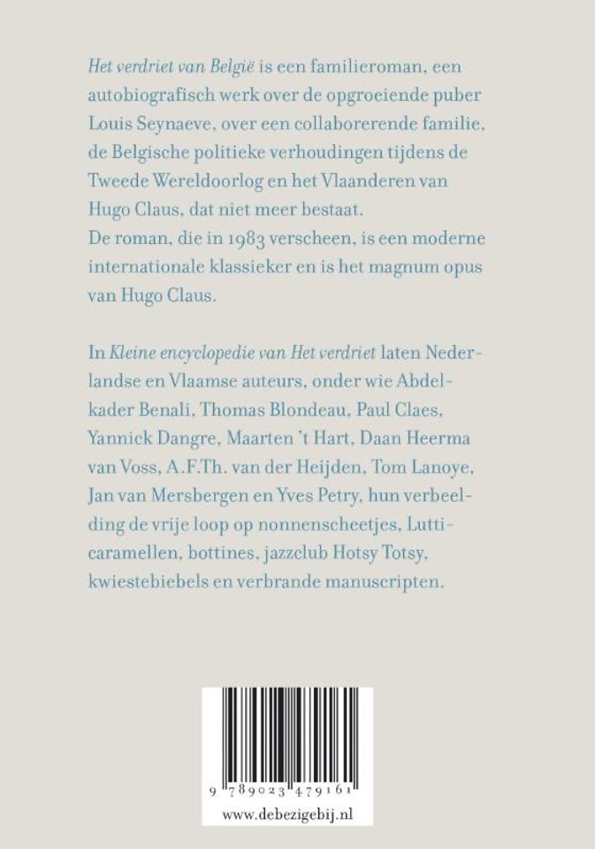 In Kleine encyclopedie van Het verdriet laten Nederlandse en Vlaamse auteurs, onder wie Abdelkader Benali, Thomas Blondeau, Paul Claes, Yannick Dangre, Maarten 't Hart, Daan Heerma van Voss, A.F.Th. van der Heijden, Tom Lanoye, Jan van Mersbergen en Yves Petry, hun verbeelding de vrije loop op nonnescheetjes, Lutti-caramellen, bottines, jazzclub Hotsy Totsy, kwiestebiebels en verbrande manuscripten.