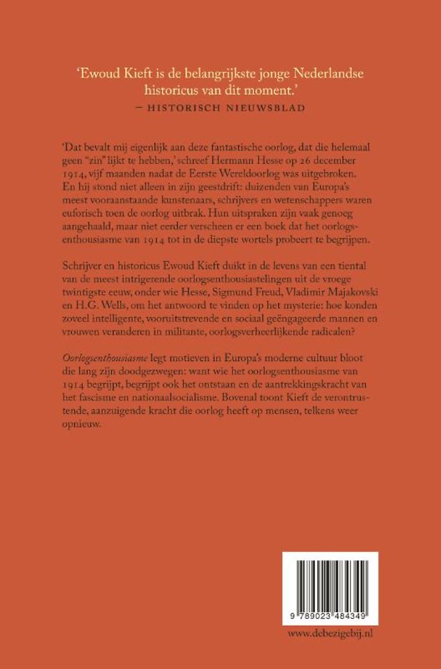 Schrijver en historicus Ewoud Kieft duikt in de levens van een tiental van de meest intrigerende oorlogsenthousiastelingen uit de vroege twintigste eeuw, onder wie Hesse, Sigmund Freud, Vladimir Majakovski en H.G. Wells, om het antwoord te vinden op het mysterie: hoe konden zoveel intelligente, vooruitstrevende en sociaal geëngageerde mannen en vrouwen veranderen in militante, oorlogsverheerlijkende radicalen?