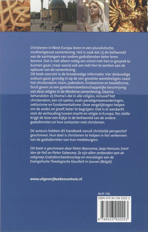 islam, jodendom, hindoeïsme en boeddhisme. Eerst beschrijven zij deze religies in West-Europa op godsdienstwetenschappelijke wijze, zo objectief mogelijk. Daarna behandelen zij thema's die in alle religies, inclusief het christendom, aan de orde komen. Deze vergelijkingen helpen de ander, en jezelf, beter te begrijpen. Ten slotte schrijven zij over de leefwereld van de andere godsdiensten en hun contacten met christenen.