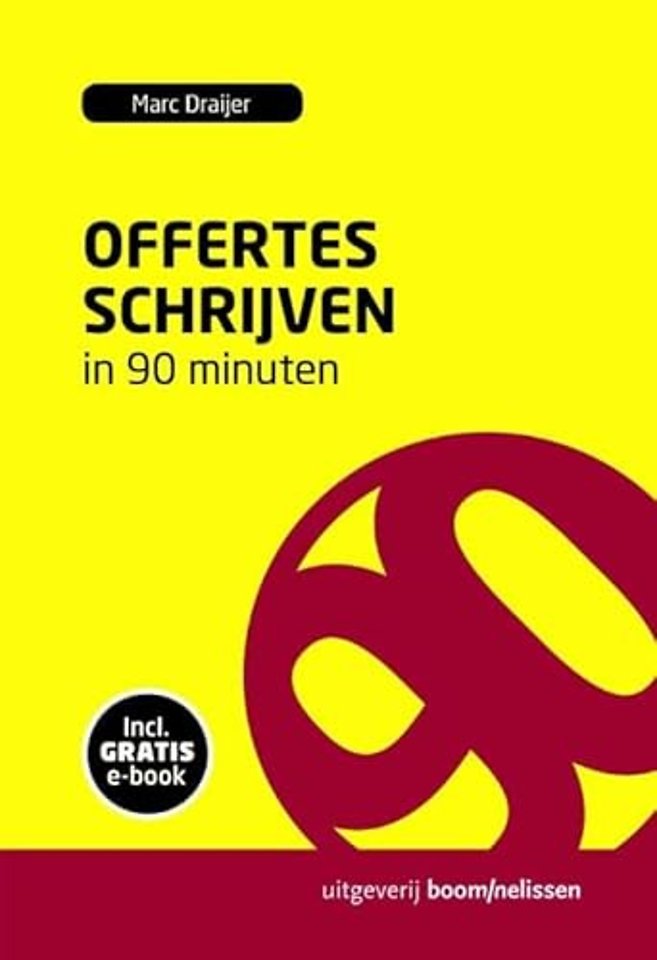 ‘Offertes schrijven in 90 minuten’ is de tweede contributie van Marc Draijer in de serie ‘in 90 minuten’. Een toegankelijk, vlot geschreven boek dat ons terugbrengt naar de basis. Wat is eigenlijk het doel van een offerte, en waar moet je rekening mee houden als je er een opstelt?