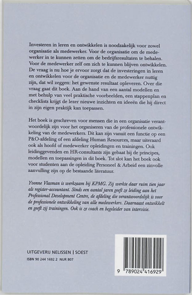 Investeren in leren en ontwikkelen is noodzakelijk voor zowel organisatie als medewerker. Voor de organisatie om de medewerker in te kunnen zetten om de bedrijfsresultaten te behalen. Voor de medewerker zelf om zich te kunnen blijven ontwikkelen. De vraag is nu hoe je ervoor zorgt dat de investeringen in leren en ontwikkelen voor de organisatie en de medewerker nuttig zijn, dat wil zeggen, het gewenste resultaat opleveren. Over die vraag gaat dit boek. Aan de hand van een aantal modellen en met behulp van veel praktische voorbeelden, een stappenplan en checklists krijgt de lezer nieuwe inzichten en ideeën die hij direct in zijn eigen praktijk kan toepassen.