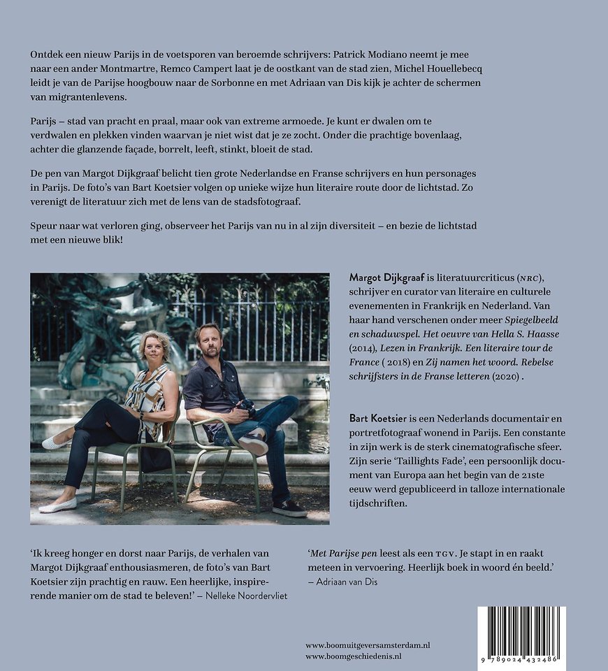 Ontdek een nieuw Parijs in de voetstappen van beroemde schrijvers: aan de hand van Patrick Modiano ontdekken we een ander Montmartre, Remco Campert laat ons de destijds arme oostkant van de stad zien, Michel Houellebecq leidt ons van de Parijse hoogbouw bij de périphérique naar de Sorbonne, Leïla Slimani volgen we van Pigalle naar de Champs-Elysées, en met Adriaan van Dis wandelen we van het rijke Jardin de Luxembourg naar Château-Rouge, de Afrikaanse wijk.