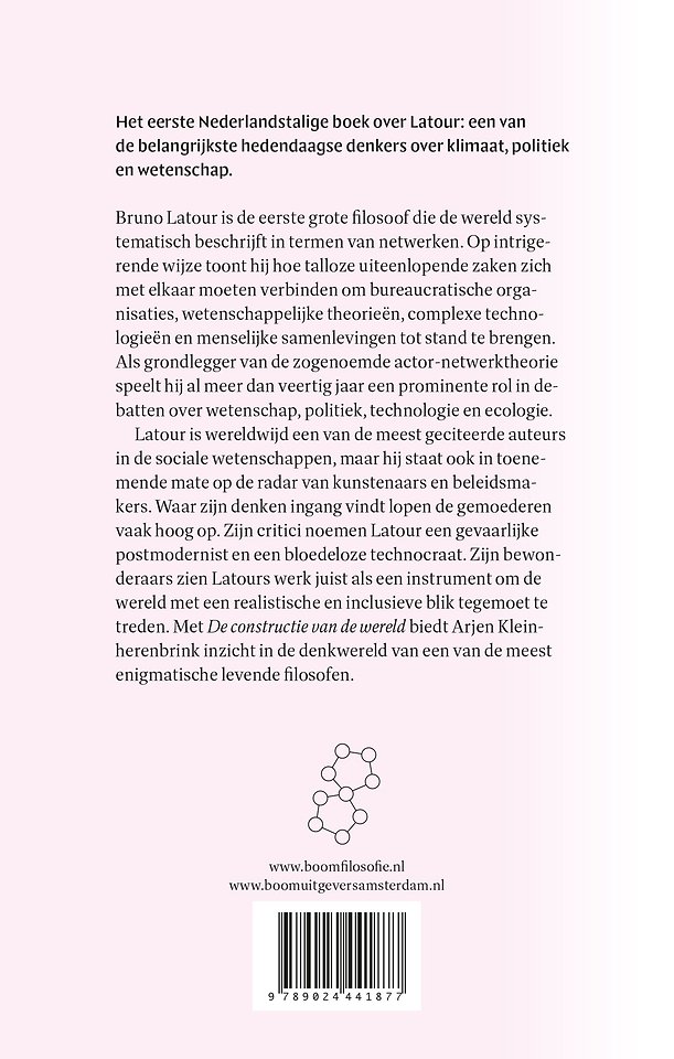 Zijn critici noemen Latour een gevaarlijke postmodernist en een bloedeloze technocraat. Zijn bewonderaars zien Latours werk juist als een instrument om de wereld met een realistische en inclusieve blik tegemoet te treden. Met De constructie van de wereld biedt Arjen Kleinherenbrink inzicht in de denkwereld van een van de meest enigmatische levende filosofen.