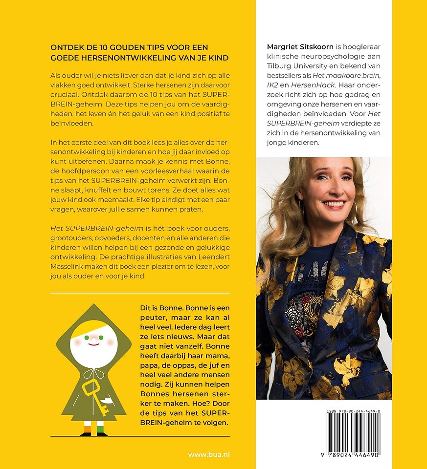 In het eerste deel van dit boek lees je alles over de hersenontwikkeling bij kinderen en hoe jij daar invloed op kunt uitoefenen. Daarna maak je kennis met Bonne, de hoofdpersoon van een voorleesverhaal waarin de tips van het SUPERBREIN-geheim verwerkt zijn. Bonne slaapt, knuffelt en bouwt torens. Ze doet alles wat jouw kind ook meemaakt. Elke tip eindigt met een paar vragen, waarover jullie samen kunnen praten.