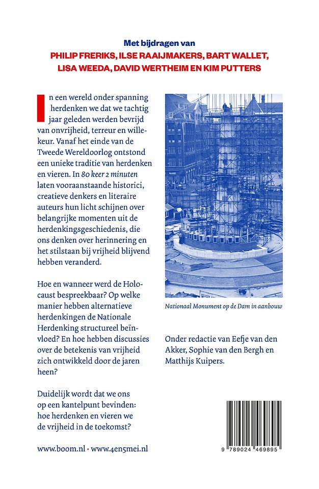 In een wereld onder spanning herdenken we dat we tachtig jaar geleden werden bevrijd van onvrijheid, terreur en willekeur. Vanaf het einde van de Tweede Wereldoorlog ontstond een unieke traditie van herdenken en vieren. In 80 keer 2 minuten laten vooraanstaande historici, creatieve denkers en literaire auteurs hun licht schijnen over belangrijke momenten uit de herdenkingsgeschiedenis, die ons denken over herinnering en het stilstaan bij vrijheid blijvend hebben veranderd.