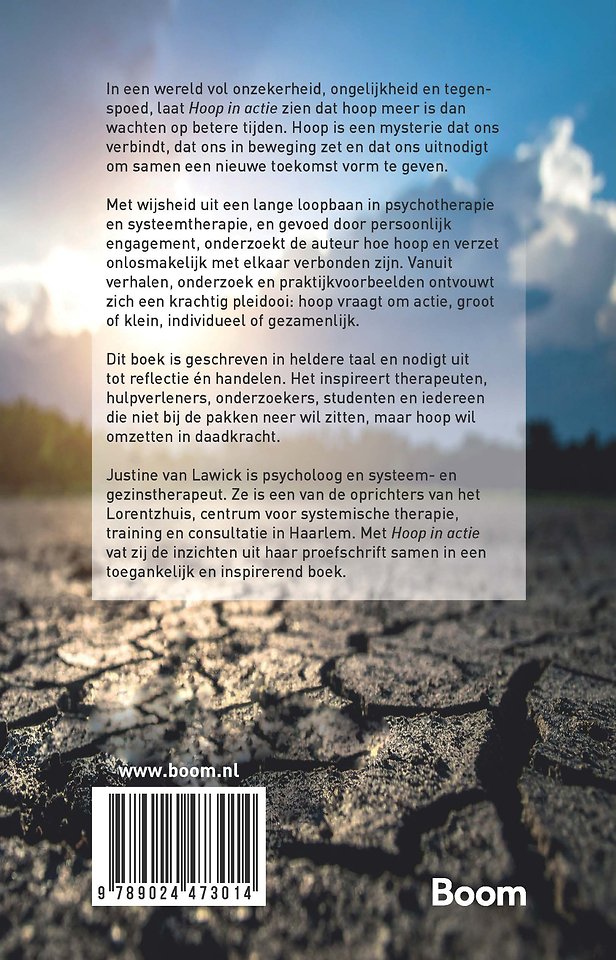 Met wijsheid uit een lange loopbaan in psychotherapie en systeemtherapie, en gevoed door persoonlijk engagement, onderzoekt de auteur hoe hoop en verzet onlosmakelijk met elkaar verbonden zijn. Vanuit verhalen, onderzoek en praktijkvoorbeelden ontvouwt zich een krachtig pleidooi: hoop vraagt om actie, groot of klein, individueel of gezamenlijk.