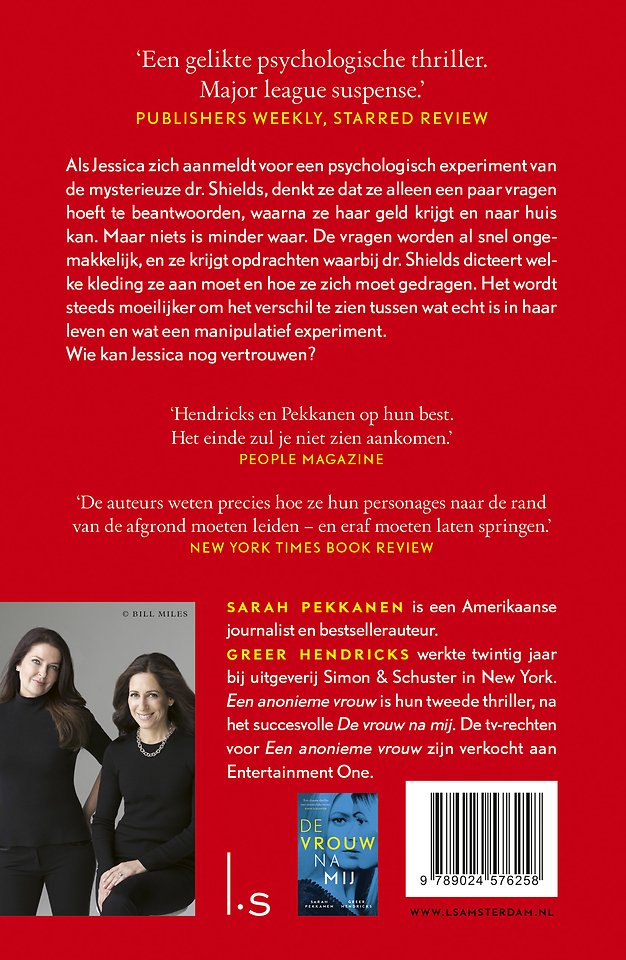 Een anonieme vrouw van Sarah Pekkanen en Greer Hendricks is een razend spannende thriller over een gevaarlijke obsessie. Eerder verscheen van dit schrijversduo De vrouw na mij.