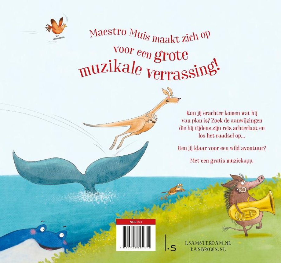 In dit prentenboek neemt Maestro Muis je mee op een betoverende reis over land en over zee. Ontdek onderweg het geheim van elk dier: van de waanzinnige walvis, jakkerende jachtluipaarden en kleine kevers tot zwierige zwanen en nog veel meer. Beluister met de gratis app en QR-codes de muziekstukken, zoek op elke pagina de verborgen bezige bij en los alle raadsels op…