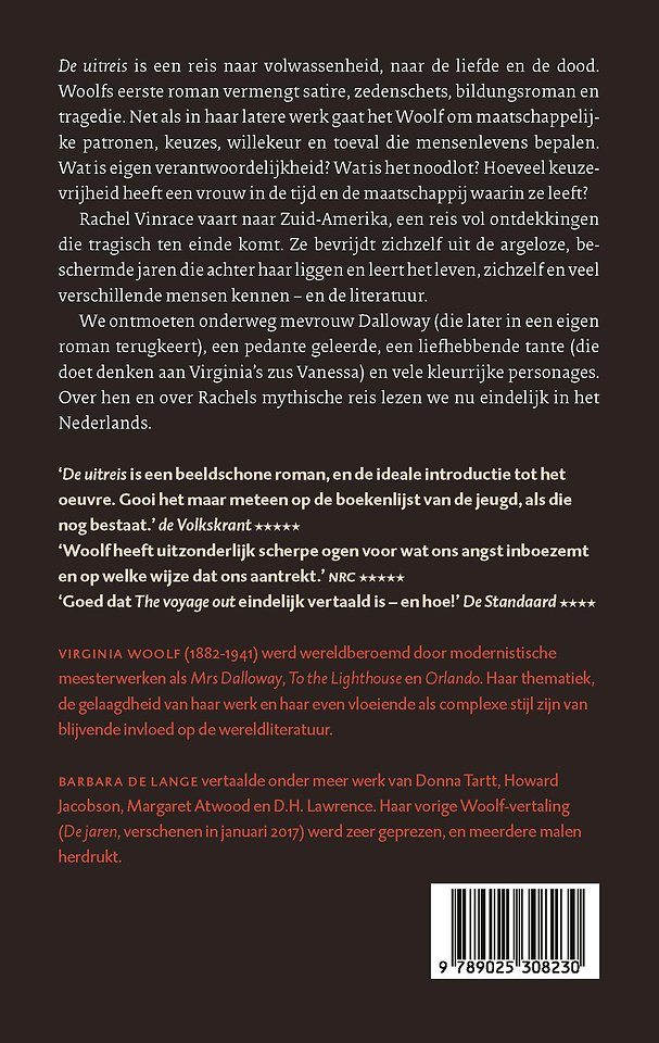 We ontmoeten onderweg mevrouw Dalloway (die later in een eigen roman terugkeert), een pedante geleerde, een liefhebbende tante (die doet denken aan Virginia’s zus Vanessa) en vele kleurrijke personages. Over hen en over Rachels mythische reis lezen we nu eindelijk in het Nederlands.