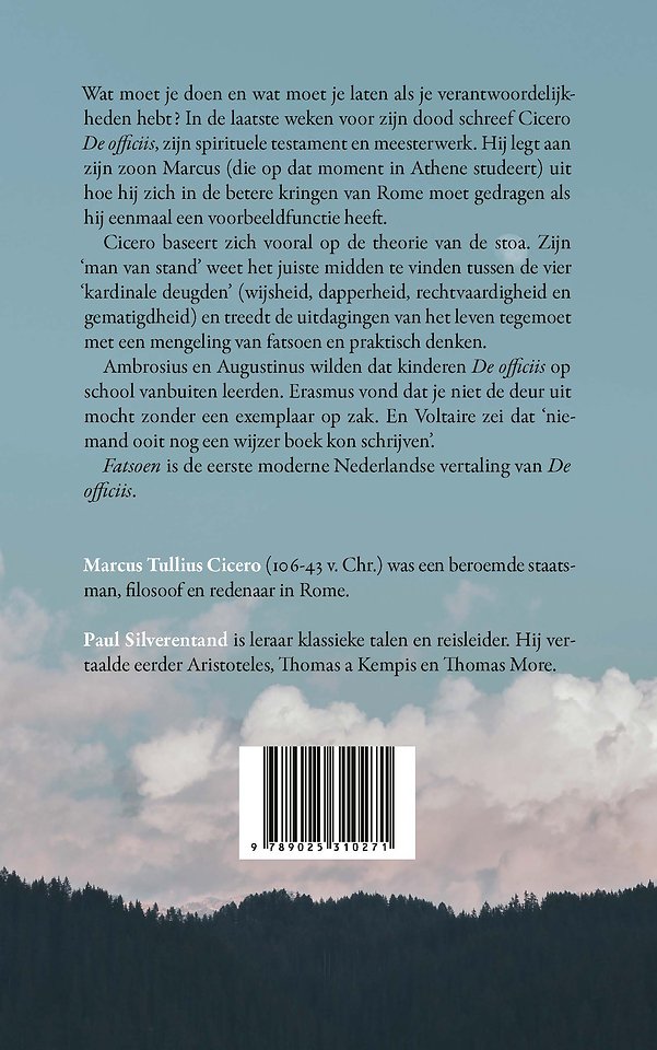 Wat moet je doen en wat moet je laten als je verantwoordelijkheden hebt? In de laatste weken voor zijn dood schreef Cicero De officiis, zijn spirituele testament en meesterwerk. Hij legt aan zijn zoon Marcus (die op dat moment in Athene studeert) uit hoe hij zich in de betere kringen van Rome moet gedragen als hij eenmaal een voorbeeldfunctie heeft.