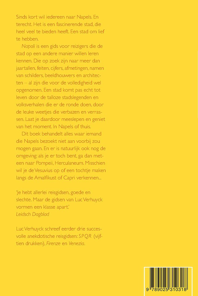 Napoli is een gids voor reizigers die de stad op een andere manier willen leren kennen. Die op zoek zijn naar meer dan feiten, cijfers, afmetingen, schilders, beeldhouwers en architecten – al zijn die voor de volledigheid wel opgenomen. Een stad komt pas echt tot leven door de talloze stadslegenden en volksverhalen, de leuke weetjes die verbazen en verrassen. Laat je daardoor meeslepen en geniet van het moment. In Napels of thuis.