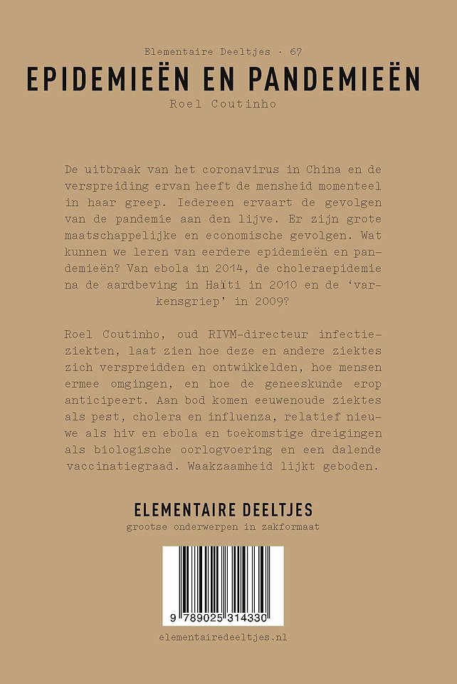 Wat kunnen we leren van eerdere epidemieën en pandemieën? De uitbraak van ebola in 2014, de choleraepidemie na de aardbeving in Haïti in 2010, de ‘varkensgriep’ in 2009. Roel Coutinho, oud RIVM-directeur infectieziekten, laat zien hoe deze en andere ziektes zich verspreidden en ontwikkelden, hoe mensen ermee omgingen, en hoe de huidige geneeskunde erop anticipeert. Aan bod komen onder meer eeuwenoude ziektes als pest, cholera en influenza, relatief nieuwe ziektes als hiv en ebola en potentiële toekomstige dreigingen zoals biologische oorlogvoering en een dalende vaccinatiegraad. En de oorsprong en verspreiding van het nieuwe coronavirus