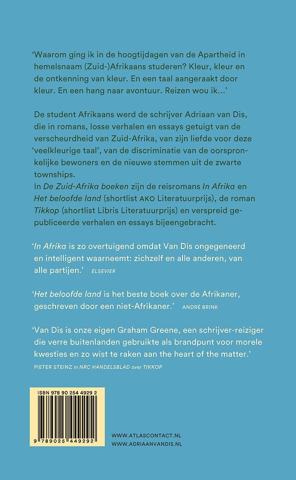In ‘De Zuid-Afrika boeken’ zijn de reisromans ‘In Afrika’ en ‘Het beloofde land’, de roman ‘Tikkop’ en verspreid gepubliceerde verhalen en essays bijeengebracht.