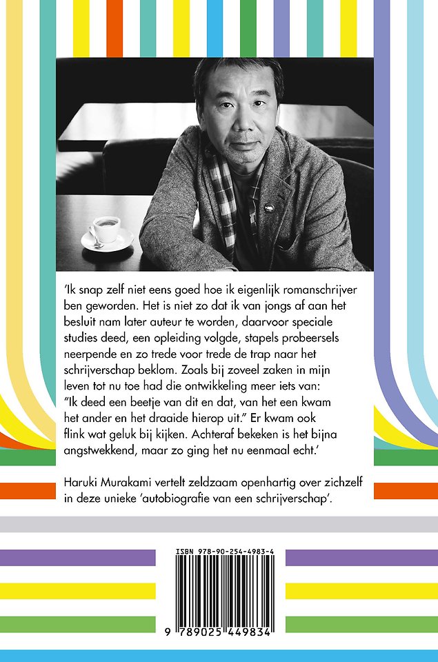 Hij vertelt in detail over zijn schrijfproces, zijn bronnen van inspiratie, de betekenis van muziek en bepaalde lievelingsschrijvers voor zijn leven en werk. Hij strooit gul met advies aan aspirant-schrijvers. En hij vertelt zeldzaam openhartig over zichzelf. Stukje bij beetje ontstaat haast datgene wat Murakami in zijn bescheidenheid nooit zou schrijven: een soort autobiografie. In ieder geval van een schrijverschap.