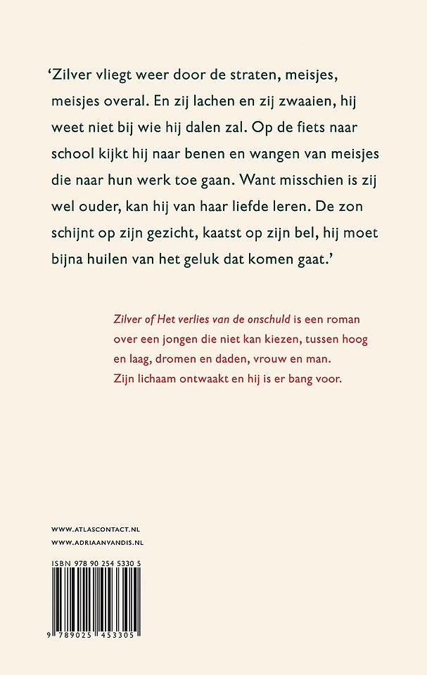 man moet worden. Hij kent zijn ouders niet, alleen de strenge hand van de Juffrouw en later de kilte van een kostschool. Hij is nieuwsgierig, laat zich lokken en verleiden en verliest zijn onschuld. Hij wil in anderen opgaan en ook zichzelf blijven, verzet zich tegen zijn eenzaamheid maar wil die ook behouden. ‘Zilver’ is een roman over een jongen die niet kan kiezen, tussen hoog en laag, dromen en daden, vrouw en man. Zijn lichaam ontwaakt en hij is er bang voor. Deze editie is voorzien van prachtige illustraties door Joost Roelofsz.