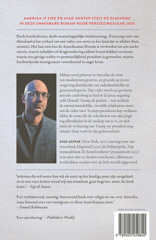 ‘Treurzang voor een thuisland’ van Ayad Akhtar is deels familiedrama, deels maatschappelijke beschouwing. Het laat zien hoe de Amerikaanse Droom is verworden tot een nachtmerrie, waarin schulden of drugsverslaving talloze levens hebben verwoest, waarin een gierige reality-tv-persoonlijkheid president is geworden, en waarin hardwerkende immigranten voortdurend in angst leven. Maar bovenal is het een verhaal van een vader, een zoon, en het land dat ze allebei thuis noemen.