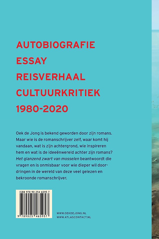 Voor deze monumentale uitgave nam Oek de Jong al zijn essays nogmaals onder handen. Hij voegde een aantal niet eerder gebundelde, cultuurkritische stukken toe en schreef een inleidend essay. De autobiografische essays uit alle periodes van zijn schrijverschap worden gekenmerkt door beeldende kracht, psychologisch inzicht en aandacht voor details. Het glanzend zwart van mosselen laat zien dat Oek de Jong niet alleen romans kan schrijven, maar ook als auteur van autobiografische essays en reisverhalen tot de top behoort.