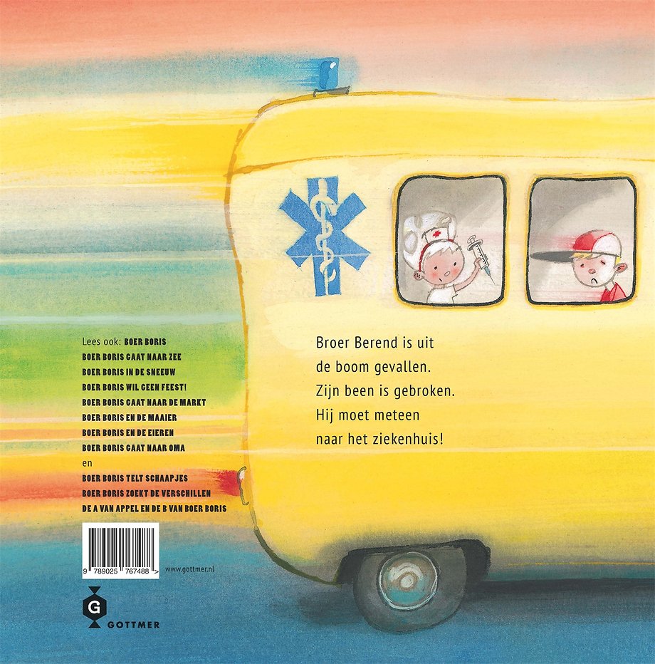 O jee! In 'Boer Boris en het gebroken been' is broer Berend is uit de appelboom gevallen. Hij heeft zijn been gebroken en wordt per ambulance naar het ziekenhuis gebracht. Als hij daar een nachtje moet blijven slapen, voelt hij zich wel heel alleen. Gelukkig komen Boris en zusje Sam de volgende dag op bezoek, maar ja, de beesten, die mist Berend toch het meeste. En Boer Boris zou Boer Boris niet zijn als hij daar geen oplossing voor wist... Voor lezers vanaf 3 jaar.