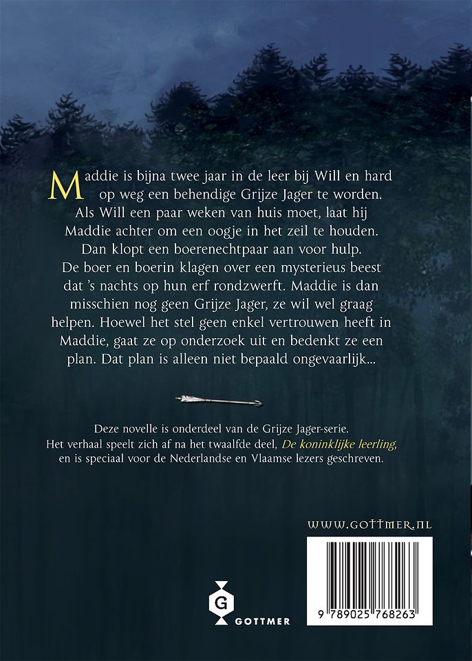 'De jacht op het schaduwdier' is een kort verhaal dat zich afspeelt na boek 12 uit de serie ('De koninklijke leerling'). Maddie is hard op weg om een behendige Grijze Jager te worden, en als Will een paar weken van huis moet, laat hij Maddie achter om een oogje in het zeil te houden. Dan klopt er een boerenechtpaar aan voor hulp. De boer en boerin klagen over een mysterieus beest dat 's nachts op hun erf rondzwerft. En Maddie mag dan misschien nog geen Grijze Jager zijn, ze wil wel graag helpen. Hoewel het stel geen enkel vertrouwen heeft in Maddie, gaat ze op onderzoek uit en bedenkt ze een plan. Dat plan is alleen niet bepaald ongevaarlijk...