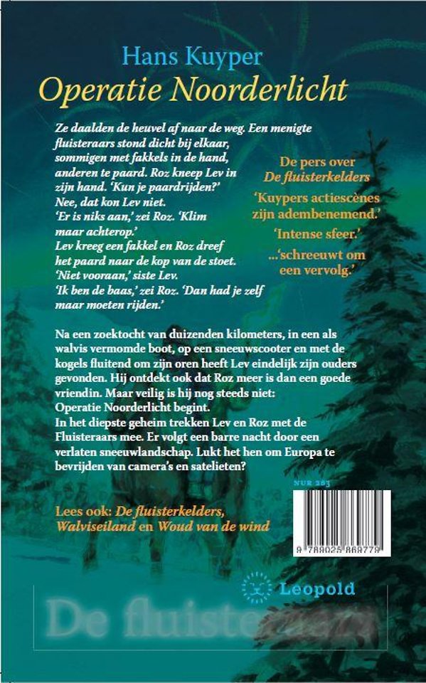 Na een zoektocht van duizenden kilometers, in een als walvis vermomde boot, op een sneeuwscooter en met de kogels fluitend om zijn oren heeft Lev eindelijk zijn ouders gevonden. Hij ontdekt ook dat Roz meer is dan een goede vriendin. Maar veilig is hij nog steeds niet: Operatie Noorderlicht begint. In het diepste geheim trekken Lev en Roz met de Fluisteraars mee. Er volgt een barre nacht door een verlaten sneeuwlandschap. Lukt het hen om Europa te bevrijden van camera's en satelieten?