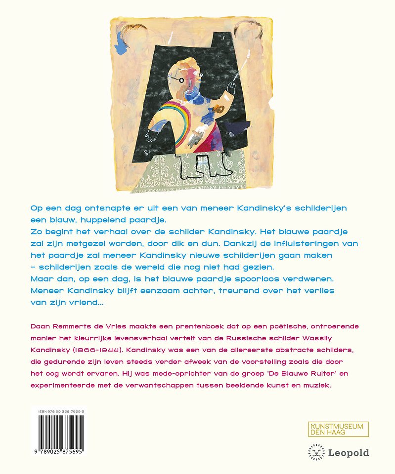 Daan Remmerts de Vries maakte een prentenboek dat op een poëtische, ontroerende manier het kleurrijke levensverhaal vertelt van de Russische schilder Wassily Kandinsky (1866-1944). Kandinsky was een van de allereerste abstracte schilders, die gedurende zijn leven steeds verder afweek van de voorstelling zoals die door het oog wordt ervaren. Hij was mede-oprichter van de groep ‘De Blauwe Ruiter’ en experimenteerde met de verwantschappen tussen beeldende kunst en muziek.