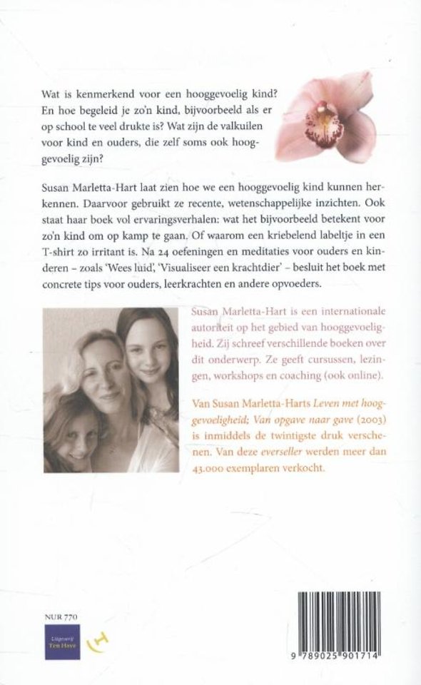 Ook staat haar boek vol verhalen: wat het bijvoorbeeld betekent voor zo n kind om op kamp te gaan of waarom het zoveel last heeft van een kriebelend labeltje in een T-shirt (deel 2). Ten slotte geeft Susan Marletta-Hart 26 oefeningen en meditaties o.a. Wees luid, Visualiseer een schild en concrete tips voor ouders en andere opvoeders (deel 3).