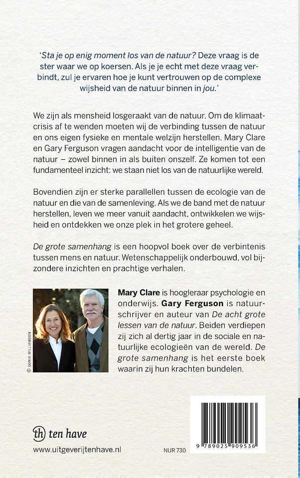 'De grote samenhang' is een hoopvol boek over de verbintenis tussen mens en natuur. Wetenschappelijk onderbouwd, vol bijzondere inzichten en prachtige verhalen.