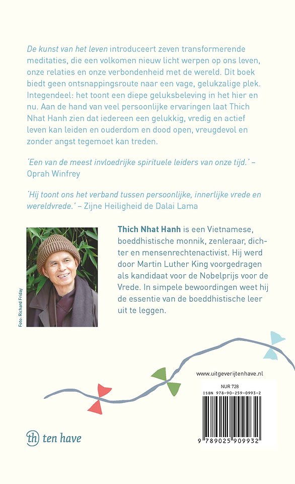'De kunst van het leven' van Thich Nhat Hanh introduceert zeven transformerende meditaties, die een volkomen nieuw licht werpen op ons leven, onze relaties en onze verbondenheid met de wereld. De meditaties gaan terug op de laatste lezingen van Thich Nhat Hanh, kort voor zijn plotselinge ziekenhuisopname. Met veel persoonlijke ervaringen laat hij zien dat iedereen een gelukkig, vredig en actief leven kan leiden en ouderdom en dood open, vreugdevol en zonder angst tegemoet kan treden.