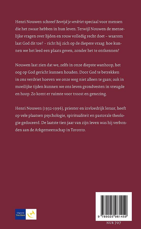 'Bevrijd je verdriet' is speciaal voor mensen die het zwaar hebben in hun leven. Terwijl Nouwen de menselijke vragen over lijden en rouw volledig recht doet (waarom laat God dit toe?) richt hij zich op de diepere vraag: hoe kunnen we het leed een plaats geven, zonder het te ontkennen?