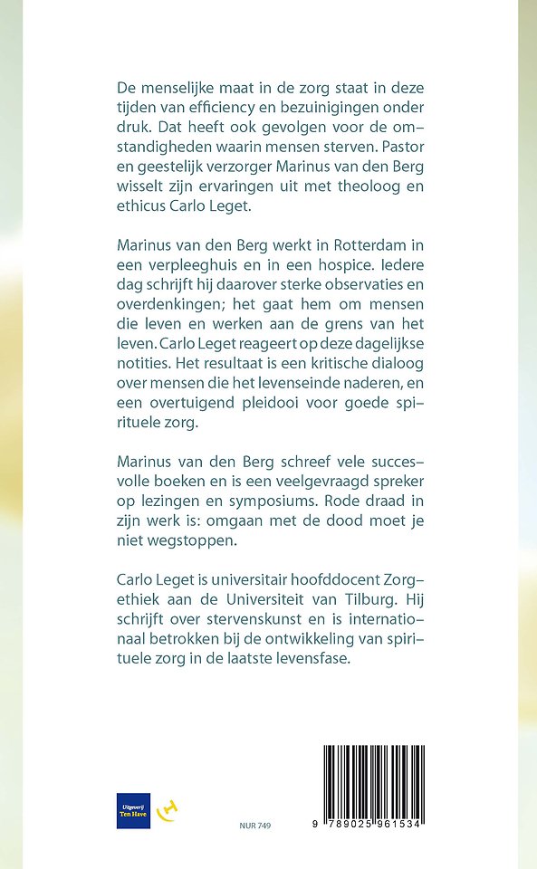Marinus van den Berg werkt in een verpleeghuis en in een hospice. Op het einde van iedere werkdag schrijft hij hierover. Dat levert sterke observaties en overdenkingen op over mensen die leven en werken aan de grens van het leven. Vanuit zijn visie en ervaring reageert Carlo Leget op deze dagelijkse notities. Het resultaat is een interessante en kritische dialoog over de situatie waarin mensen verkeren als ze het levenseinde naderen.