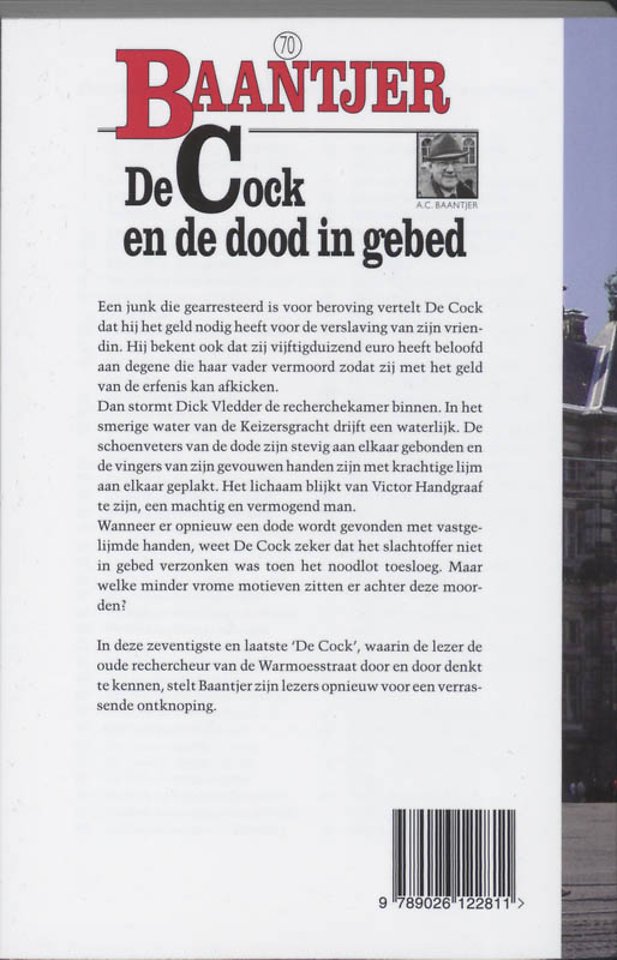 Deel 70 in de Baantjer-serie, ‘De Cock en de dood in gebed’, met in de hoofdrol rechercheur De Cock en zijn assistent Vledder van bureau Warmoesstraat in Amsterdam.