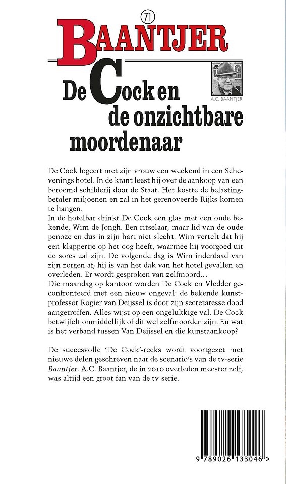 Deel 71 in de Baantjer-serie, ‘De Cock en de onzichtbare moordenaar’, met in de hoofdrol rechercheur De Cock en zijn assistent Vledder van bureau Warmoesstraat in Amsterdam.