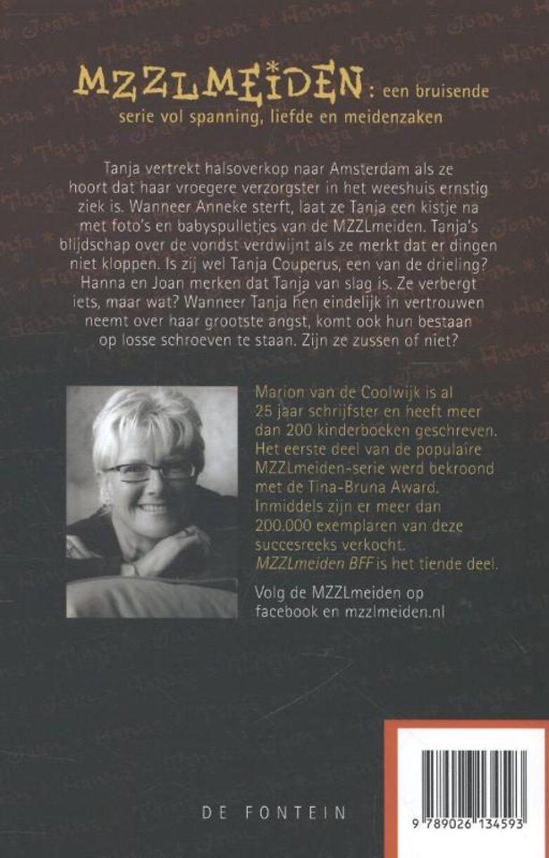Marion van de Coolwijk is al 25 jaar schrijfster en heeft meer dan 200 kinderboeken geschreven. Het eerste deel van de populaire MZZLmeiden-serie werd bekroond met de Tina-Bruna Award. Inmiddels zijn er meer dan 200.000 exemplaren van deze succesreeks verkocht. MZZLmeiden BFF is het tiende deel.