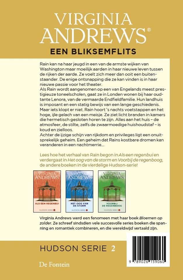 ‘Een bliksemflits’ is het tweede boek in de vierdelige Hudson-serie van Virginia Andrews.
