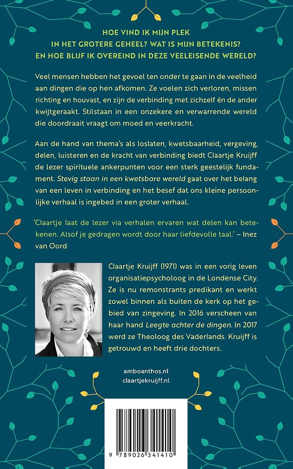 Stevig staan in een kwetsbare wereld van Claartje Kruijff gaat over het belang van een leven in verbinding en het besef dat ons kleine persoonlijke verhaal is ingebed in een groter verhaal.