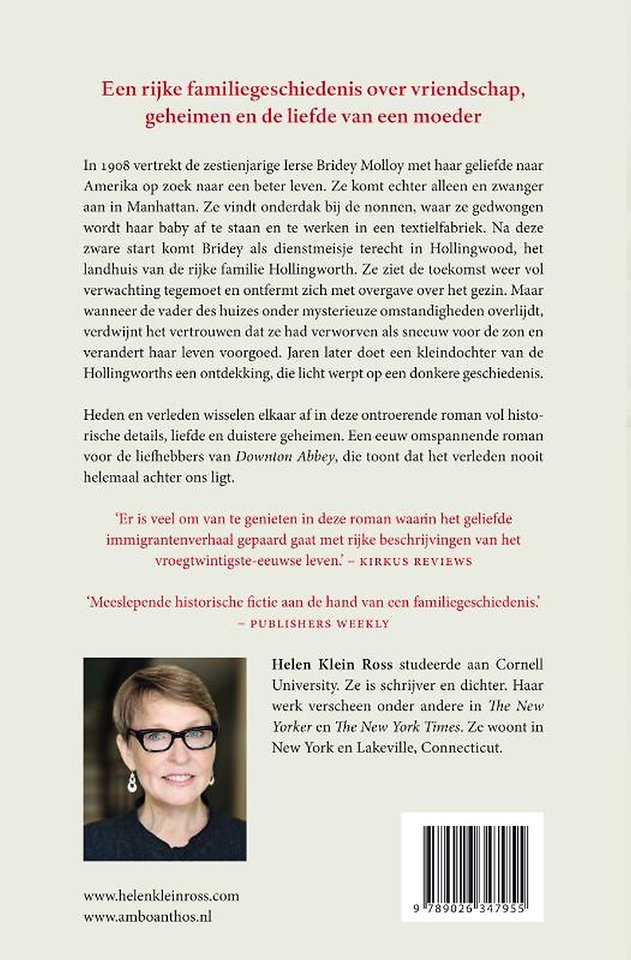 In 1908 vertrekt de zestienjarige Ierse Bridey naar Amerika op zoek naar een beter leven. Alleen, maar zwanger, komt ze aan in Manhattan. Ze vindt onderdak bij de nonnen, maar wordt gedwongen haar baby af te staan. Na een zware start komt ze als dienstmeisje terecht in Hollingwood, het landhuis van de rijke Hollingworths. Bridey ziet de toekomst weer met vertrouwen tegemoet en ze ontfermt zich over hun geadopteerde zoontje. Wanneer de patriarch onder mysterieuze omstandigheden overlijdt, verandert Brideys leven voorgoed. Jarenlang achtervolgen haar geheimen de Hollingworths tot een van de nazaten een voorwerp vindt dat al die tijd verborgen heeft gelegen en licht werpt op een donkere geschiedenis.