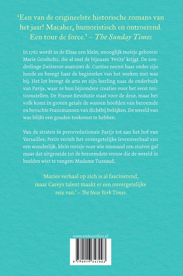 ***** ‘In Petite hoor je echo’s van Dickens, van Andersen en de gebroeders Grimm. Het is lang geleden, van Patrick Süskind Het parfum, dat een roman zo knap balanceerde tussen macaber en teergevoelig, tussen horror en humor. En de vertaling is van een uitzonderlijk niveau, vol finesse. Lezen dus, want mensen sterven en vergaan, maar in Carey’s handen blijven ze betoveren.’ – De Standaard
