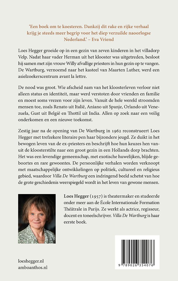 Zestig jaar na de opening van De Wartburg in 1962 reconstrueert Loes Hegger in Villa De Wartburg op verhalende wijze haar bijzondere jeugd. Voor de lezers van ’t Hooge Nest en Het zwijgen van Maria Zachea.