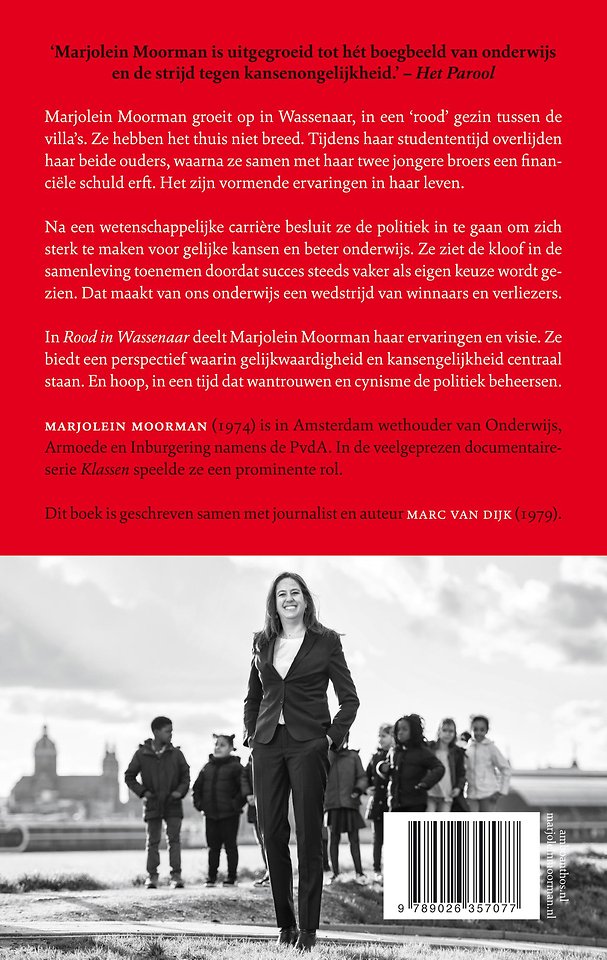 In 'Rood in Wassenaar' vertelt Marjolein Moorman haar verhaal, van haar jeugd in een van de rijkste gemeenten van Nederland tot haar strijd als wethouder in Amsterdam. Ze streeft naar meer kansengelijkheid en minder armoede, naar kwalitatief goed en toegankelijk onderwijs voor iedereen. Met lef en daadkracht toont ze hoe het sociaaldemocratische ideaal in de praktijk gebracht kan worden en opnieuw aan geloofwaardigheid kan winnen.