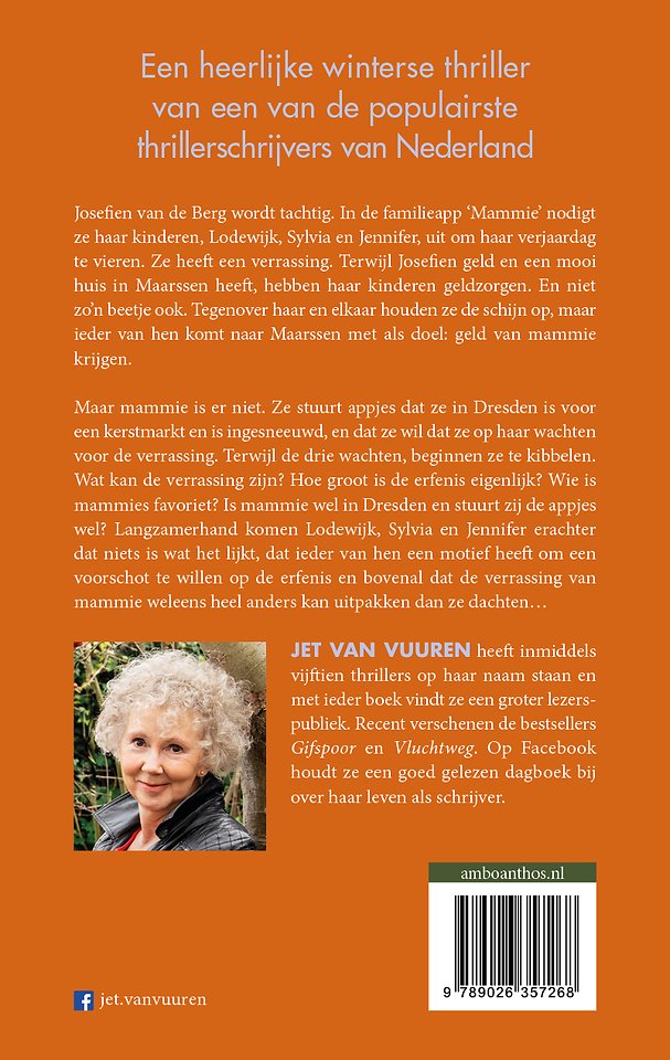 Josefien van de Berg wordt 80. In de familieapp ‘Mammie’ nodigt ze haar kinderen, Lodewijk (52) Sylvia (54) en Jennifer (48) uit om haar verjaardag te vieren. Ze heeft een verrassing voor hen. Waar Josefien geld en een mooi huis in Maarssen heeft, hebben haar kinderen geldzorgen. En niet zo’n beetje ook. Tegenover haar en elkaar houden ze de schijn op dat alles goed gaat. Ze komen allemaal samen in Maarssen met als doel geld van Mammie te krijgen. Maar Mammie is er niet. Ze stuurt appjes naar de kinderen dat ze in Dresden is voor een kerstmarkt en is ingesneeuwd. Maar ze wil dat de kinderen op haar wachten voor de verrassing.